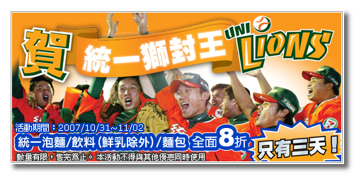 統一集團立刻宣佈回饋球迷,全台相關企業商品打折優惠。