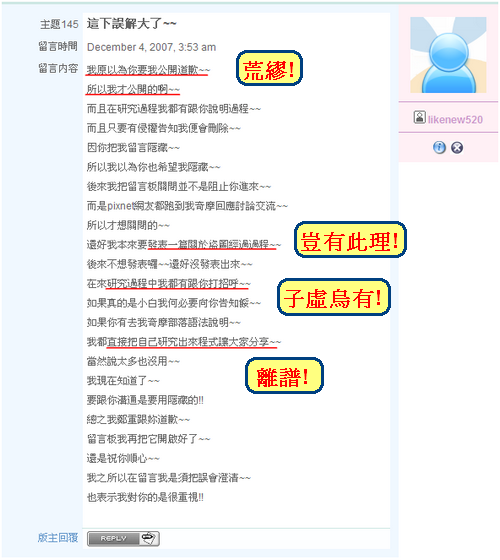 這件事的真相內容我想我也說的夠清楚夠明白! 既然承認了有需要再如此大費周章說那些嗎?