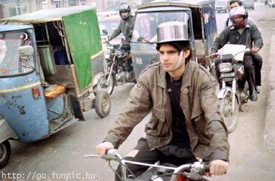 這個就厲害了! 鍋子都拿出來用了...當鋼盔啊?